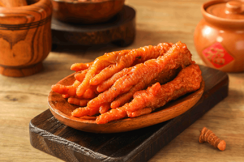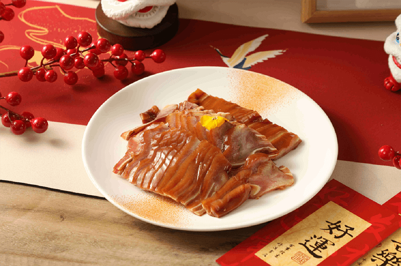 经精细处理去除杂质,以秘制酱汁与十余种香料配成的老卤文火慢卤,充分入味。成品酱香醇厚,口感脆嫩弹牙,胶质丰富。